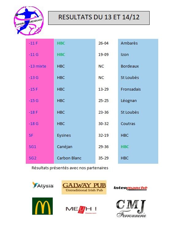 handball cubzaguais les résultats soyez les bienvenus Victoire des U11 filles 26 à 4 👏👏💪 Plateau de notre mini hand de ce dimanche à Izon Victoire de nos -18 Filles 30-20 👏 Victoire de nos seniors 2 31-23 👏👏 Tous les résultats Nos partenaires